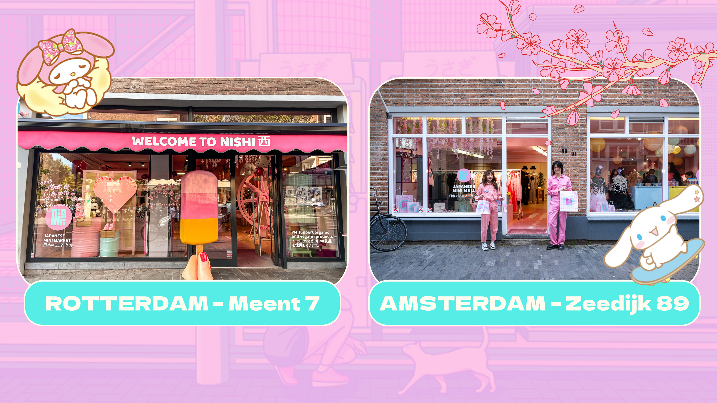 Nishi opened the doors of her first mini department store in Rotterdam on December 14th, 2019. Since September 9th, 2023, a second location has been welcoming customers in Amsterdam. Stepping into Nishi feels like being transported directly to Tokyo. A perfect way to escape everyday life. The stores are fully decorated from head to toe in the popular Japanese Kawaii style. Nishi is a true paradise for those who love Japan and the super sweet Kawaii style. We offer not only clothing and accessories, but also stationery, Japan books, anime and manga merchandise, beauty products and the cutest Japanese homeware.